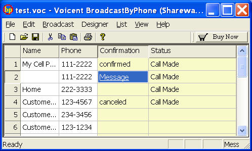 You should see the confirmation column and status column be filled after each completed calls. If you have a message, simply click on it to hear the message.